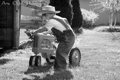Carter is all about tractors! He knows all the name brands and types of tractors and machinery. His Pop bought him this tractor, and he was right at home riding it in the yard! He said that he needed to go buy some parts for it. 🙂